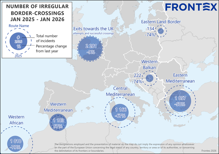 Η «επιτυχία» που διαφημίζει η Frontex — μείωση σχεδόν 40% στις «παράτυπες διελεύσεις» το πρώτο τρίμηνο του 2026 (βλέπε https://www.frontex.europa.eu/media-centre/news/news-release/frontex-severe-winter-weather-contributes-to-a-60-drop-in-irregular-border-crossings-in-january-SVelBU) — έρχεται πακεταρισμένη με έναν αριθμό που δεν χωρά σε Δελτία Τύπου: περίπου 1.000 νεκροί. Κι όμως, αυτός ο αριθμός δεν παρουσιάζεται ως αποτυχία. Παρουσιάζεται σχεδόν ως… παράπλευρη απώλεια μιας «αποτελεσματικής» πολιτικής αποτροπής!