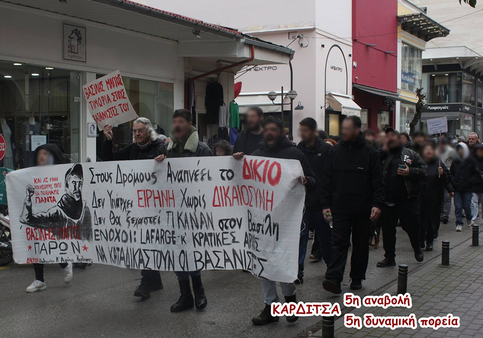 Πέντε αναβολές έχει πάρει ως τώρα στο Μεικτό Ορκωτό Δικαστήριο Καρδίτσας η δίκη των μπάτσων που κατηγορούνται για τη δολοφονία του Βασίλη Μάγγου. Κι ενώ η δίκη για τα κακουργήματα αναβάλλεται μεθοδευμένα, ορίστηκε για την 1η Απρίλη η εκδίκαση της έφεσης των τριών αστυνομικών που καταδικάστηκαν πρωτόδικα σε φυλάκιση δύο ετών ο καθένας.
