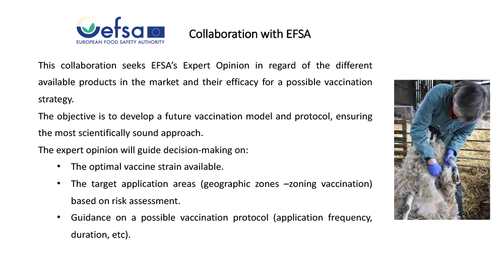 Η εισήγηση δε χρειάζεται ερμηνείες. Είναι ξεκάθαρη. Το ΥΠΑΑΤ προσχωρεί στη «λύση» του εμβολιασμού, σε αντίθεση με όσα λέει τόσο καιρό τώρα. Και αναθέτει στην περιβόητη EFSA (Ευρωπαϊκή Αρχή Ασφάλειας Τροφίμων) να του υπαγορεύσει τα σχετικά.