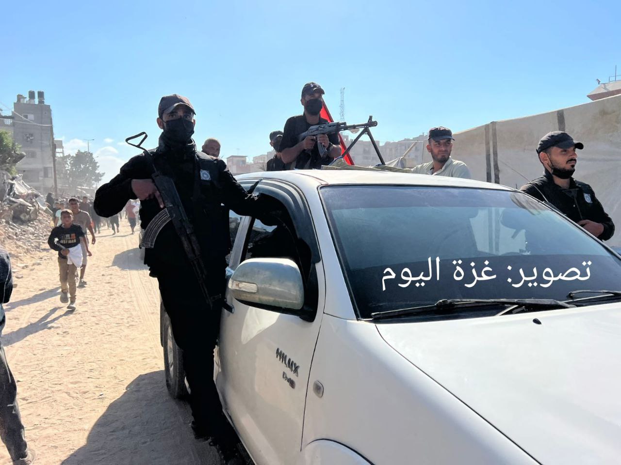 Μαχητές αναπτύχθηκαν και στο προαύλιο του Ιατρικού Συγκροτήματος Αλ-Νάσερ, όπου θα εξεταστούν και θα νοσηλευτούν οι απελευθερωμένοι Παλαιστίνιοι.