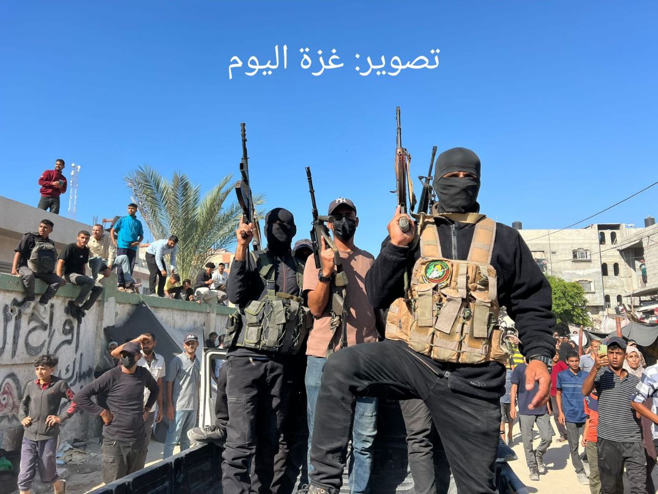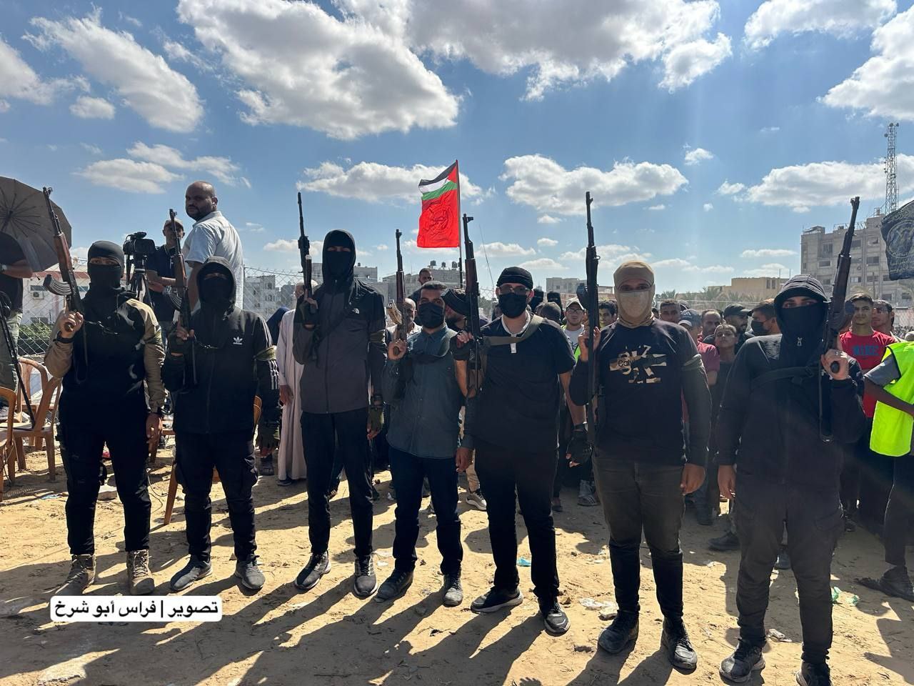 Αντρες της Αντίστασης παρατάχτηκαν ένοπλοι στο χώρο. Αρκετοί έφεραν ισραηλινά όπλα, λάφυρα του πολέμου.