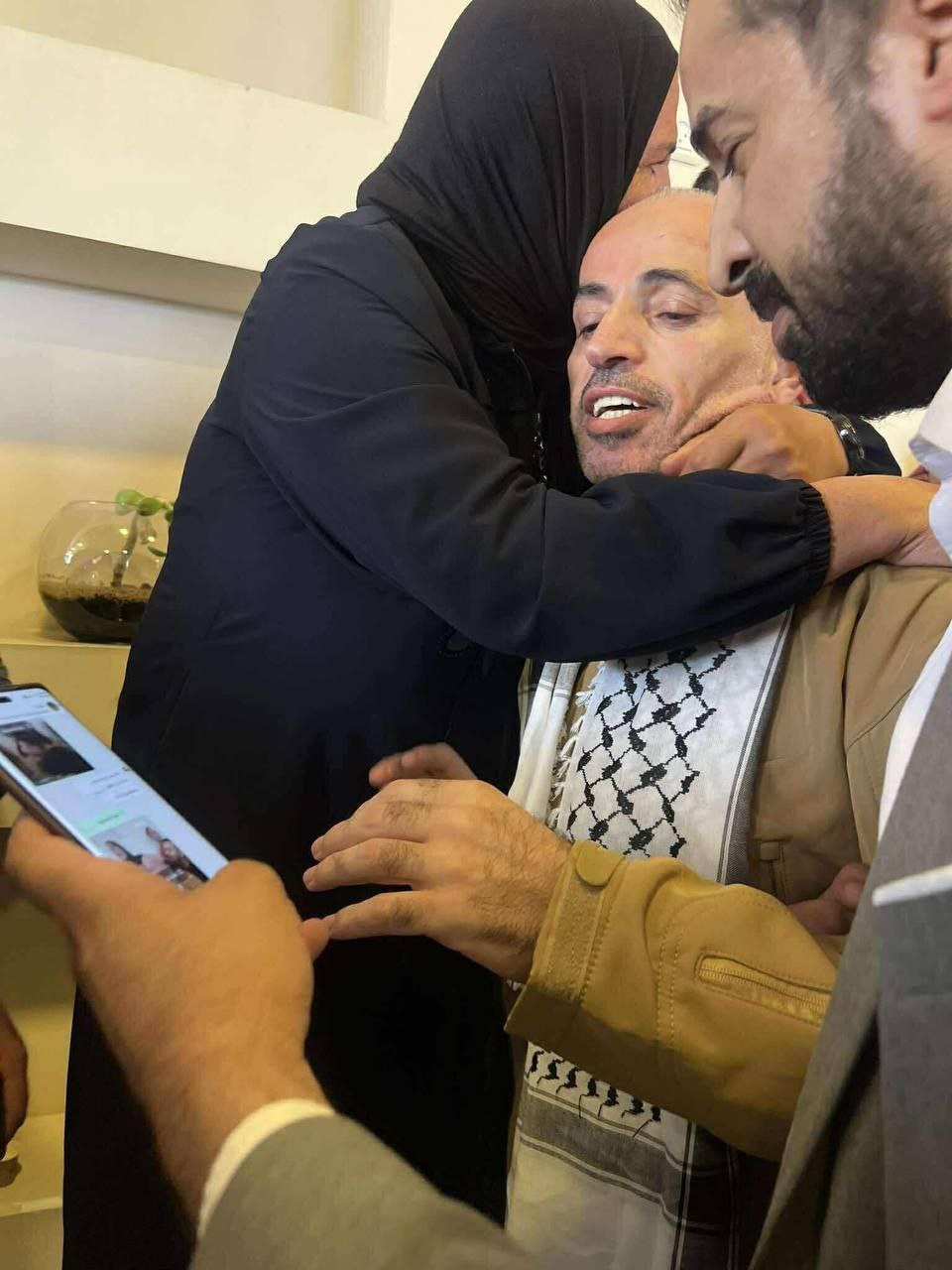Ο Ραέντ Κανάαν από τη Νάμπλους αγκαλιάζει την οικογένειά του μετά την απελευθέρωσή του από τις φυλακές.