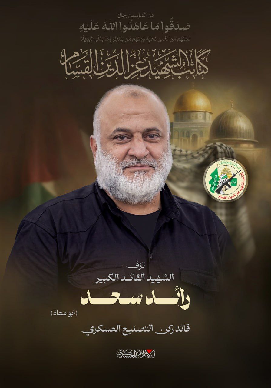 Σε ομιλία που εκφωνήθηκε τη Δευτέρα 29 Δεκέμβρη, ο εκπρόσωπος των Ταξιαρχιών Ιζεντίν αλ-Κασάμ, Αμπού Ομπάιντα, δήλωσε: «Με υπερηφάνεια και τιμή, πενθούμε τον μεγάλο μάρτυρα διοικητή και μαχητή, τον εκλιπόντα Αρχηγό του Επιτελείου των Ταξιαρχιών αλ-Κασάμ, Μοχάμεντ Σινουάρ (Αμπού Ιμπραχίμ)· τον μεγάλο διοικητή Μοχάμεντ Σαμπάνα (Αμπού Ανάς), διοικητή της Ταξιαρχίας Ράφα· τον μεγάλο διοικητή Χακάμ Ισα (Αμπού Ομάρ), επικεφαλής της Διεύθυνσης Οπλων Μάχης· και τον μεγάλο διοικητή, τον μάρτυρα σεΐχη Ράεντ Σαάντ (Αμπού Μουάζ), επικεφαλής της Διεύθυνσης Κατασκευών των Ταξιαρχιών αλ-Κασάμ».