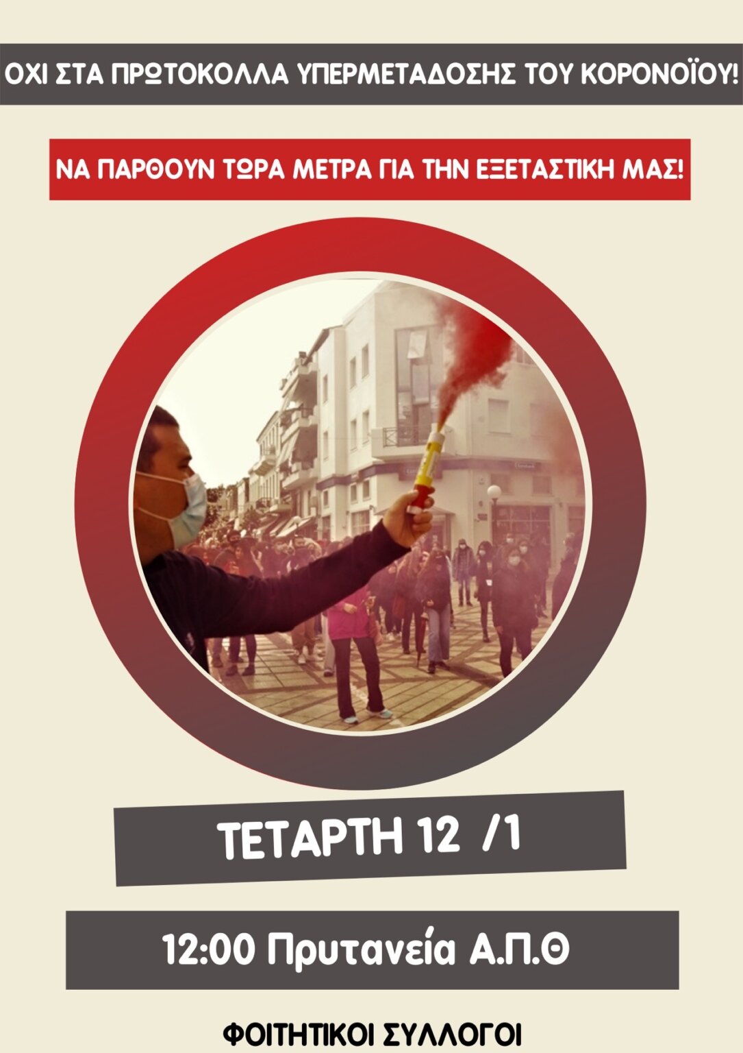Μετά τις μαθητικές καταλήψεις (σήμερα μάθαμε ότι σε αυτές προστέθηκε και η κατάληψη του καλλιτεχνικού σχολείου Θεσσαλονίκης), στο χορό των κινητοποιήσεων μπήκαν και οι φοιτητές. Αντιδρούν στην επαναλειτουργία των Πανεπιστημίων με τα ίδια ακριβώς εγκληματικά πρωτόκολλα που έκλεισαν για τις γιορτές. Η επιστροφή στα αμφιθέατρα με αυτούς τους όρους συνιστά ένα διαρκές κορονοπάρτι, με άμεσες επιπτώσεις στην υγεία των φοιτητών, των οικογενειών τους και κατ’ επέκταση στην αλυσίδα της πανδημίας. Για το λόγο αυτό οργανώνονται συγκεντρώσεις φοιτητικών συλλόγων σε Θεσσαλονίκη και Αθήνα σήμερα Τρίτη και αύριο Τετάρτη. Παραθέτουμε την ανακοίνωση των φοιτητών του ΑΠΘ: Η κυβέρνηση και το Υπουργείο Παιδείας, χωρίς ίχνος ντροπής, ανακοίνωσαν το άνοιγμα των Πανεπιστημίων ακριβώς με τους ίδιους όρους που έκλεισαν πριν τα Χριστούγεννα!! Ακόμα και τώρα που τα κρούσματα έχουν φτάσει τα 50.000 ημερησίως η κυβέρνηση αδιαφορεί προκλητικά για αναγκαία μέτρα προστασίας της υγείας των φοιτητών και όλων των μελών της πανεπιστημιακής κοινότητας! Στην πράξη…