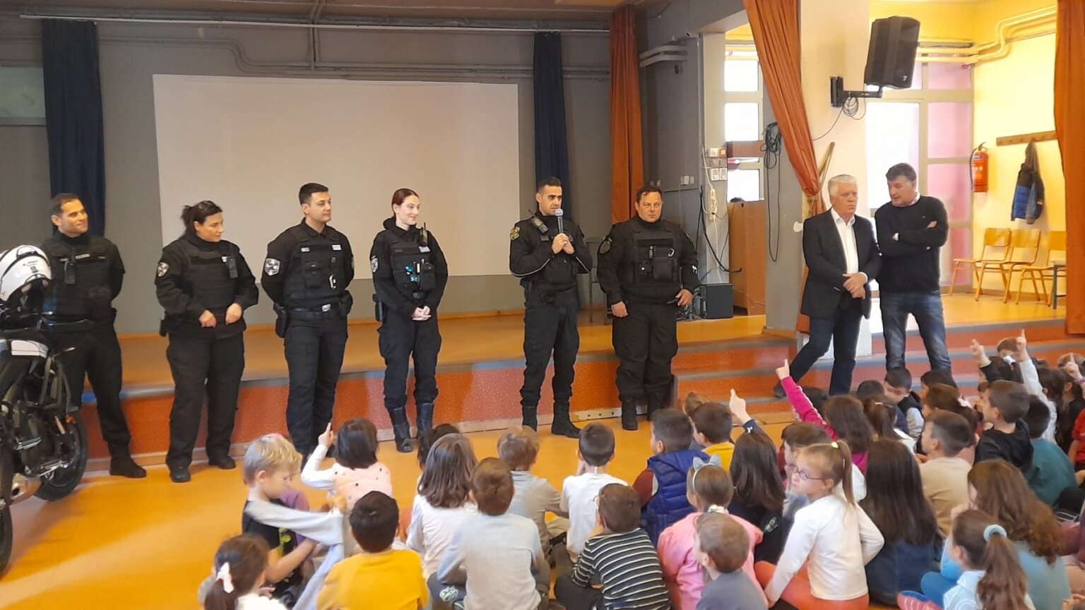 Η είδηση προκαλεί ανατριχίλα και συγχρόνως αγανάκτηση για το πώς κάποιοι στη διοίκηση της εκπαίδευσης επιθυμούν να μυήσουν τους μαθητές στην αποδοχή και νομιμοποίηση της άγριας καταστολής. Πρόκειται για την «εισβολή» (σ.σ. έτσι ακριβώς παρουσιάζεται στην ιστοσελίδα του σχολείου σε μια προσπάθεια με χαριτωμενιά τάχα να απεκδυθεί η ΔΙΑΣ τον κατασταλτικό της ρόλο!) των ρόμποκοπ της ΔΙΑΣ στο 7ο Δημοτικό Σχολείο της Αγίας Παρασκευής, που ανέλαβαν ρόλο «επιμόρφωσης» των μικρών μαθητών της Α΄και Β΄τάξης, με τις ευλογίες του διευθυντή του σχολείου και του Δημάρχου της Αγίας Παρασκευής, ο οποίος είχε και τη σχετική πρωτοβουλία. Διαβάζουμε τις εμετικές ευχαριστίες στην ιστοσελίδα του σχολείου, διαβάζουμε για τον πώς οι μπάτσοι «με ευγένεια», «ευαισθησία» και «υπομονή» εξήγησαν στα παιδιά «βιωματικά το ρόλο και την αποστολή της Αμεσης Δράσης και γενικότερα της Ελληνικής Αστυνομίας», για το ότι σαν σε παιδική χαρά «τα παιδιά ανέβηκαν στις μηχανές, έπαιξαν με τους ασυρμάτους και τις σειρήνες, συζήτησαν…