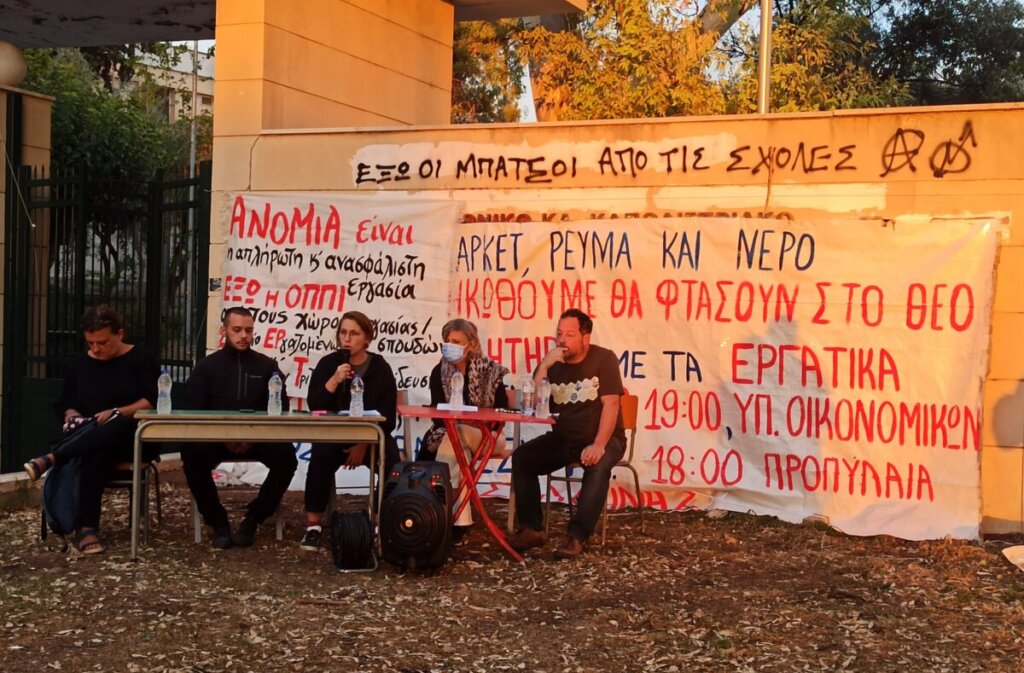 Η καταστολή στα πανεπιστημιακά ιδρύματα συνδέθηκε με τη γενικευμένη επίθεση που δέχονται τα εργασιακά δικαιώματα, οι συλλογικές διεκδικήσεις και το δικαίωμα στην απεργία. Τονίστηκε επίσης (εκπρόσωπος ΕΔΙΠ ΕΚΠΑ) ότι υπάρχει απόλυτη σύνδεση ανάμεσα στην τακτική της κυβέρνησης (κατάργηση ασύλου, πανεπιστημιακή αστυνομία, καταστολή διαδηλώσεων) και το νόμο-πλαίσιο Κεραμέως, του πανεπιστήμιου της αγοράς, που ήρθε ως φυσική συνέχεια.