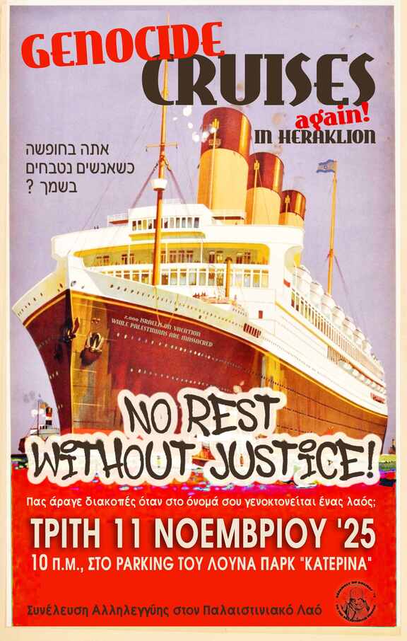 Κάλεσμα σε συγκέντρωση διαμαρτυρίας λόγω της άφιξης του κρουαζιερόπλοιου CROWN IRIS στο Ηράκλειο την Τρίτη 11 Νοεμβρίου.