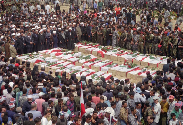 Κορωνίδα στην εγκληματική του δράση υπήρξε το έγκλημα της Κανά. Τον Απρίλη του 1996, κατά τη διάρκεια της σιωνιστικής εισβολής στο Λίβανο, ο Πέρες διέταξε να βομβαρδιστεί η περιοχή γύρω από το χωριό Κανά, στο πλαίσιο της επιχείρησης «Τα Σταφύλια της Οργής». Το σιωνιστικό πυροβολικό σκότωσε περισσότερους από 100 ανθρώπους, ανάμεσά τους και υπάλληλους της ειρηνευτικής αποστολής του ΟΗΕ (στη φωτογραφία, η κηδεία των λιβανέζων νεκρών).