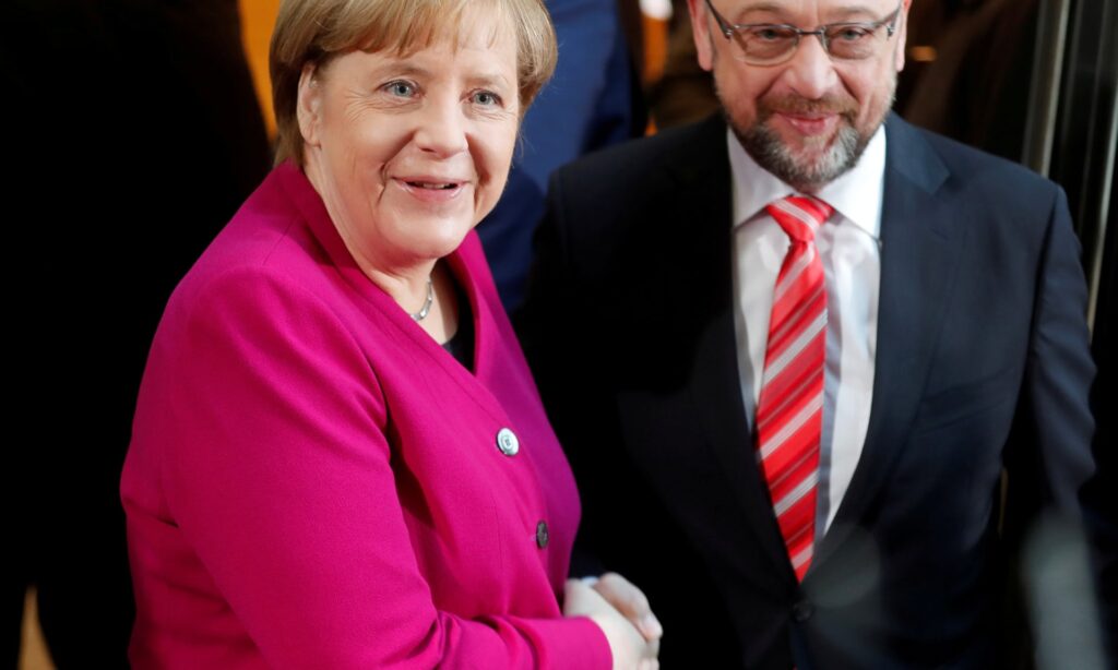 Η φημισμένη γερμανική μεθοδικότητα κάνει και πάλι το θαύμα της. Εκεί που ο Σουλτς δεν ήθελε ν' ακούσει για νέο «μεγάλο συνασπισμό» με τους χριστιανοδημοκράτες της Μέρκελ και τους συμμάχους της βαυαρούς χριστιανοκοινωνιστές, έχουμε φτάσει σε μια περίοδο εντατικών διαβουλεύσεων ανάμεσα στα τρία κόμματα, με στόχο να καταλήξουν στο κυβερνητικό πρόγραμμα του νέου «μεγάλου συνασπισμού».