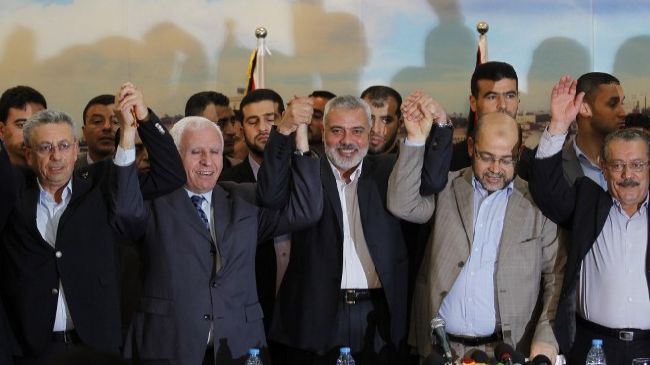 Δυο χρόνια μετά την τελευταία κυβέρνηση «εθνικής ενότητας» στην Παλαιστίνη (κατέρρευσε παταγωδώς στις δημοτικές εκλογές του Οκτώβρη του 2012 με το μποϊκοτάζ της Χαμάς), οι δύο μεγαλύτερες παλαιστινιακές οργανώσεις καταλήγουν για μία ακόμη φορά σε συμφωνία «εθνικής συμφιλίωσης». Η συμφωνία επιτεύχθηκε με αιγυπτιακή διαμεσολάβηση (της οποίας γίνεται μνεία στο τέλος του κειμένου που υπογράφτηκε), κατά τη συνάντηση των αντιπροσωπιών των δύο οργανώσεων την προηγού-μενη βδομάδα (25/4) στη Λωρίδα της Γάζας. Σύμφωνα με τη συμφωνία, ο παλαιστίνιος πρόεδρος (πρόεδρος καταχρηστικά, διότι η θητεία του έχει λήξει εδώ και πέντε χρόνια) Μαχ- μούντ Αμπάς πρέπει εντός πέντε εβδομάδων να σχηματίσει κυβέρνηση «εθνικής ενότητας», βασισμένη στις προηγούμενες συμφωνίες μεταξύ Φατάχ και Χαμάς (τις συμφωνίες του Καΐρου και της Ντόχα, τον Απρίλη του 2011 και το Φλεβάρη του 2012 αντίστοιχα). Εξι μήνες μετά το σχηματισμό της κυβέρνησης αυτής (κυβέρνησης «τεχνοκρατών», σύμφωνα με τη συμφωνία του Καΐρου) θα πρέπει να γίνουν ταυτόχρονα προεδρικές και βουλευτικές εκλογές, καθώς και οι εκλογές για το Εθνικό Συμβούλιο της Οργάνωσης για την Απελευθέρωση της Παλαιστίνης (PLO). Η συμφωνία προβλέπει επίσης ότι θα πρέπει να επαναλειτουργήσουν οι επιτροπές «κοινωνικής συμφιλίωσης» και «ελευθεριών» καθώς και η παλαιστινιακή βουλή.