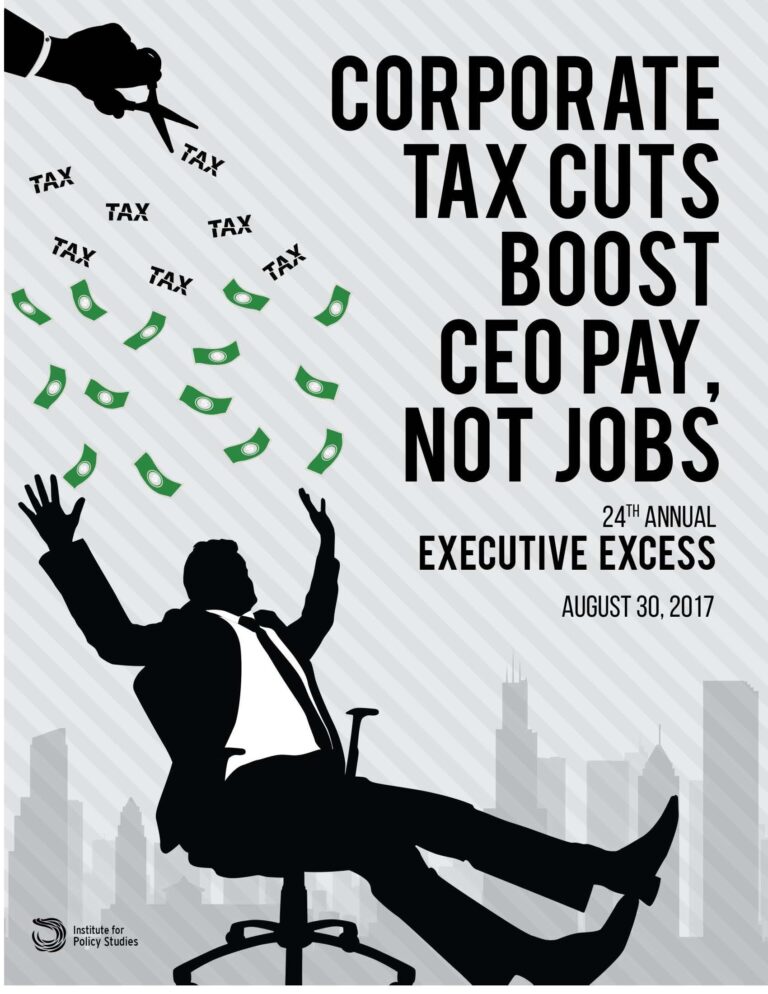 Μήπως όμως θα γίνουν προσλήψεις; Ούτε αυτό αναμένεται να γίνει, όπως αναφέρει έκθεση του Ινστιτούτου Πολιτικών Μελετών, που δημοσιεύτηκε τον περασμένο Αύγουστο (https://www.ips-dc.org/report-corporate-tax-cuts-boost-ceo-pay-not-jobs/), με τον εύγλωττο τίτλο: «Οι μειώσεις των φόρων των επιχειρήσεων εκτινάσσουν τις αμοιβές των στελεχών και όχι τις θέσεις εργασίας». Η έκθεση μελετά την πορεία 92 κερδοφόρων επιχειρήσεων (με συνεχή κερδοφορία από το 2008 μέχρι και το 2015) και αποδεικνύει ότι, μολονότι πλήρωσαν πολύ κάτω από τον ανώτατο συντελεστή φόρου, μείωσαν το προσωπικό τους κατά 1%, παρά το γεγονός ότι στον ιδιωτικό τομέα σημειώθηκε αύξηση της απασχόλησης κατά 6% για την ίδια χρονική περίοδο.