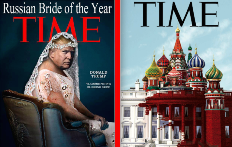 Το τερμάτισε το ΤΙΜΕ με τα εξώφυλλά του. Πότε δείχνει τον Λευκό Οίκο να μετατρέπεται σε Κρεμλίνο και πότε ντύνει τον Τραμπ «Ρωσική Νύφη της Χρονιάς». Πρόκειται, φυσικά, για παπάρες που έρχονται να υπηρετήσουν την προεκλογική εκστρατεία των Δημοκρατικών για τις Ενδιάμεσες Εκλογές του προσεχούς Νοέμβρη. Αν ο Τραμπ τους κερδίσει και αυτή τη φορά, θα είναι για να φουντάρουν ομαδικά.