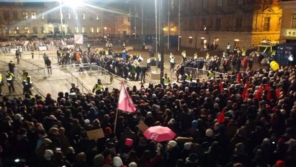 Τουλάχιστον 3.000 αντιφασίστες, σύμφωνα με την ανακοίνωση της αστυνομίας, απάντησαν δυναμικά στην πρώτη απόπειρα του κινήματος PEGIDA (Πατριώτες Ευρωπαίοι Ενάντια στην Ισλαμοποίηση της Δύσης) να πραγματοποιήσει συγκέντρωση τη Δευτέρα 9 Φλεβάρη στην πόλη Μάλμε στη Νότια Σουηδία. Οι αντιφασίστες διαδηλωτές περικύκλωσαν μερικές δεκάδες οπαδούς του PEGIDA, που είχαν συγκεντρωθεί στην κεντρική πλατεία της πόλης, φωνάζοντας συνθήματα όπως «όχι ρατσιστές στους δρόμους μας» και εκτοξεύοντας εναντίον τους καπνογόνα και πυροτεχνήματα, γεγονός που ανάγκασε την αστυνομία να παρέμβει για να τα σβήσει και να τους προστατεύσει.