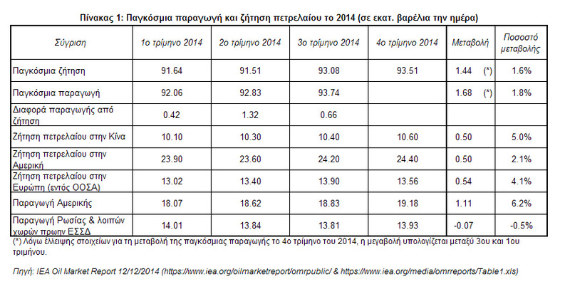 3. Oil Market Report – Εκθεση 12/12/14 (https://www.iea.org/media/omrreports/Table1.xls & https://www.iea.org/oilmarketreport/omrpublic/).