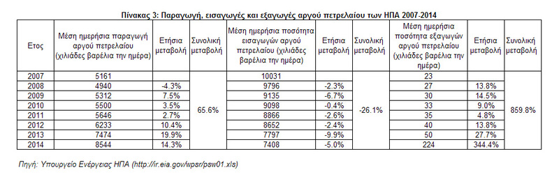 6. Ο Πίνακας 3 συντάχτηκε σύμφωνα με τους αναλυτικούς πίνακες που δημοσιεύει το υπουργείο Ενέργειας των ΗΠΑ στο διαδίκτυο (https://ir.eia.gov/wpsr/psw01.xls).