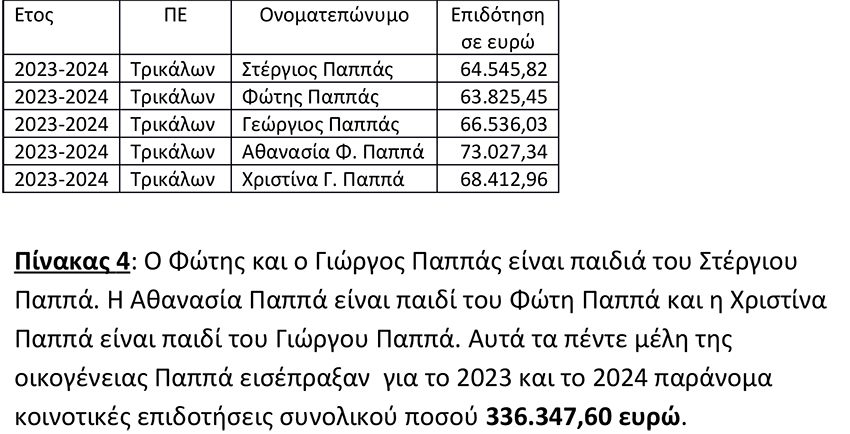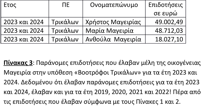Οι 16 κτηνοτρόφοι και «κτηνοτρόφοι» πήραν 812.548,08 ευρώ παράνομες κοινοτικές επιδοτήσεις για τις χρονιές 2023 και 2024. Προφανώς πήραν και τις χρονιές 2018, 2019, 2020, 2021 και 2022, γιατί μεθοδευμένα είχαν απαλλαγεί, εκτός από τους τρεις της οικογένειας Μαγειρία, και οι υπόλοιποι 13!