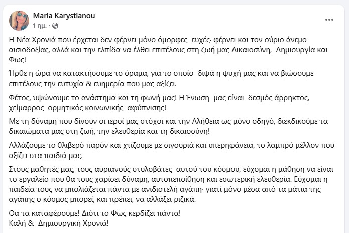 Πρωτοχρονιάτικη δήλωση αρχηγού κόμματος (δεν έχει σημασία που δεν υπάρχει ακόμα) είναι η παρακάτω. Ανέμπνευστη, ανερμάτιστη, μπουρδολογική, με μια εσάνς χριστιανικού φαταλισμού, δάνειο από τον μανιχαϊσμό (η πάλη των δυνάμεων του φωτός με τις δυνάμεις του σκότους).