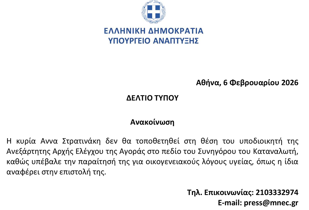• Γιατί στην ανακοίνωση του υπουργείου Ανάπτυξης δεν αναφέρεται τίποτα περί «συκοφαντιών» που οδήγησαν τη Στρατινάκη σε παραίτηση;