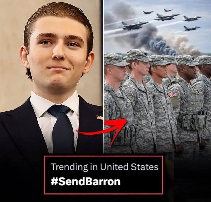 Δεν είναι τυχαίο, λοιπόν που το σύνθημα #SendBarron κυριαρχεί στα αμερικάνικα σόσιαλ μίντια, σε άπειρες εκδοχές, ευφάνταστες και μη. Οπου Μπάρον είναι ο μικρός γιος του Τραμπ, ηλικίας 19 ετών, δηλαδή στρατεύσιμος. Τώρα, μετά τα περί εκδρομούλας, περιμένουμε το σύνθημα #SendBarron__to_LittleExcursion (Στείλτε τον Μπάρον στην εκδρομούλα).