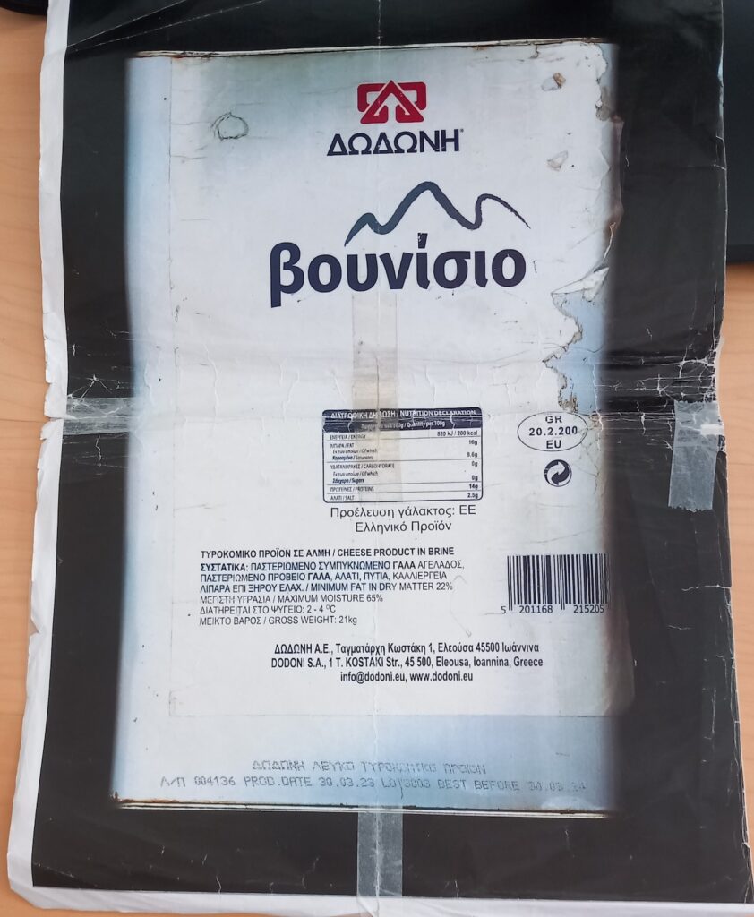 Στην πάνω όψη της συσκευασίας δεν αναγράφεται η προέλευση του γάλακτος, όπως είναι υποχρεωμένη η εταιρία από την ισχύουσα νομοθεσία.