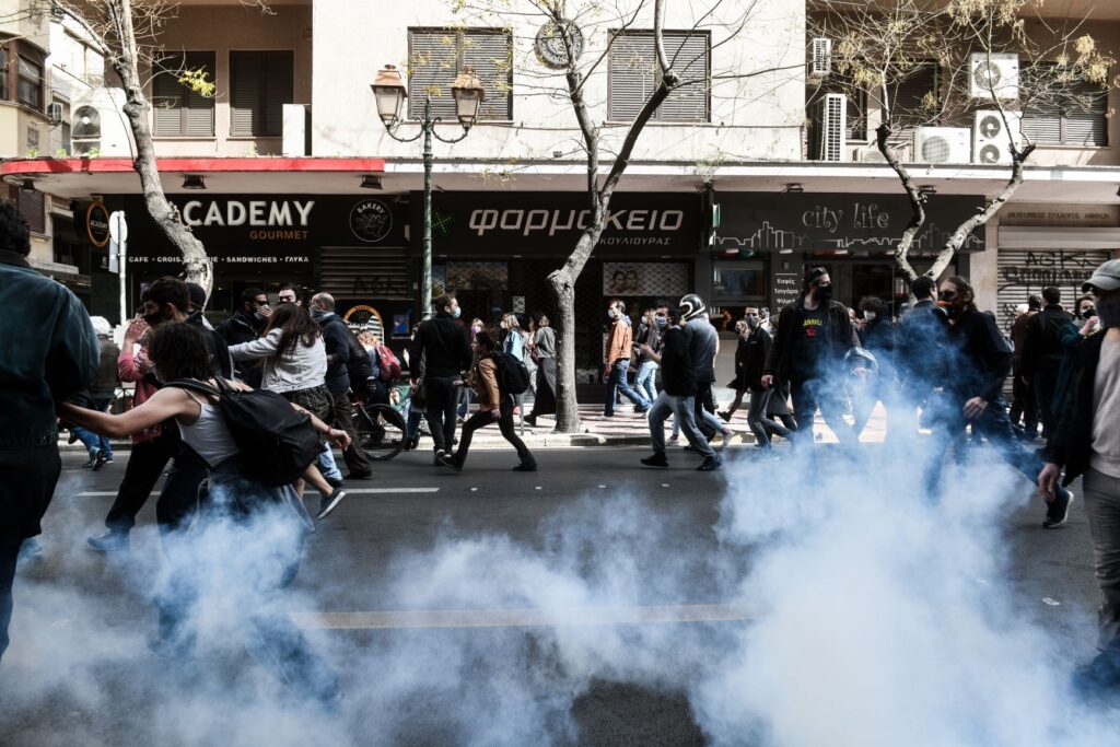 Kαι σήμερα, λοιπόν, επαναλήφθηκαν τα χτεσινά: χτύπησαν τη διαδήλωση προτού καν συγκροτηθεί. Την επίθεση δέχτηκαν οι πρώτοι που προσπάθησαν να προσεγγίσουν την κατειλημμένη και περικυκλωμένη από μπάτσους Πλατεία Συντάγματος και μετά άρχισε το κυνηγητό στους γύρω δρόμους, όλων όσων κρίνονταν «ύποπτοι» ότι μπορεί να πηγαίνουν στη διαδήλωση. Χημικά, νερό από το κανόνι της αύρας, εφορμήσεις των μοτοσικλετιστών της ΔΕΛΤΑ, ξύλο και πάνω από είκοσι προσαγωγές.