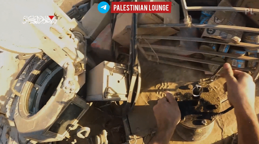 - Με απαράμιλλο θάρρος και παροιμιώδη ψυχραιμία, ένας μαχητής κουβαλάει τον εκρηκτικό μηχανισμό (ζυγίζει 21 κιλά), σκαρφαλώνει στο σιωναζιστικό τανκ, πυροδοτεί το μηχανισμό και τον «καρφώνει» μέσα στο τανκ, από φεγγίτη που οι σιωναζιστές είχαν αφήσει ανοιχτό, προφανώς επειδή πίστευαν ότι στην περιοχή αυτή των μετόπισθεν είναι απόλυτα ασφαλείς.