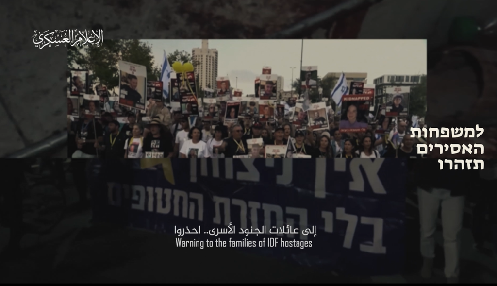 ΥΓ1. Η Χαμάς παρενέβη σήμερα με μια πολύ έξυπνη κίνηση προπαγάνδας. Ενα απλό βίντεο των Αλ-Κασάμ, με υποτιτλισμό σε αραβικά, εβραϊκά και αγγλικά, που λέει στις οικογένειες των αιχμαλώτων στρατιωτών, ότι ο Νετανιάχου δεν ενδιαφέρεται για τους δικούς τους αλλά μόνο για τον εαυτό του. Μην τον εμπιστεύεστε!
