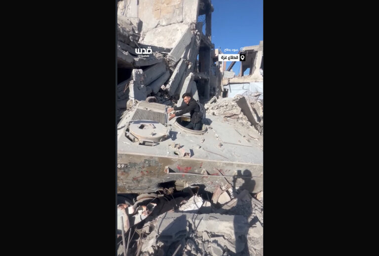 Δείξε τους την τρύπα από κάτω — στο σύμβολο της ισραηλινής ισχύος, το άρμα Μερκάβα».