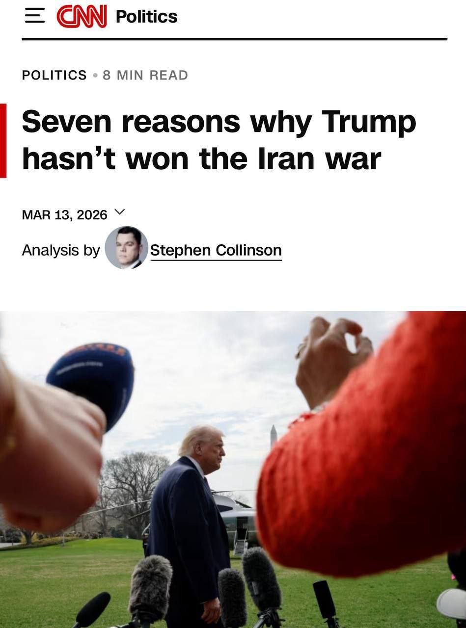 Δημοσίευμα του CNN με τίτλο: «Εφτά λόγοι για τους οποίους ο Τραμπ έχασε τον πόλεμο με το Ιράν»
