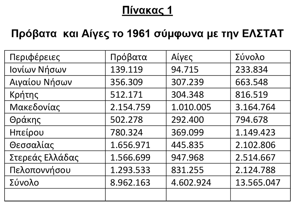 • Το 1961: 2.514.667 αιγοπρόβατα