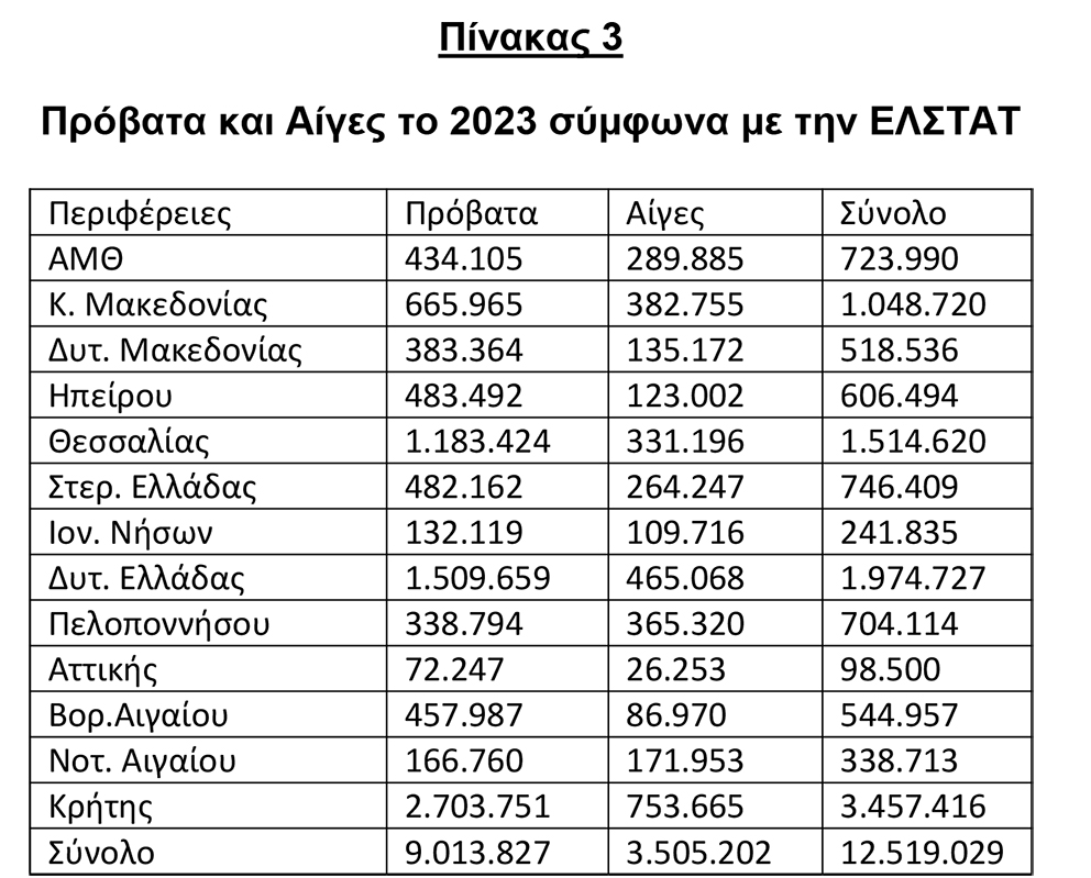 • Το 2023: 3.457.416 αιγοπρόβατα