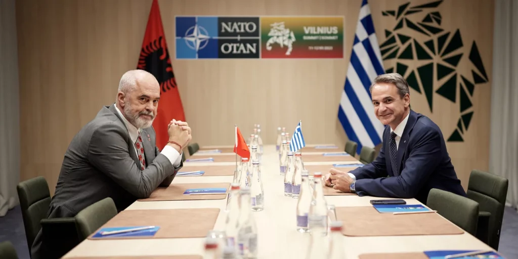 Ο Μητσοτάκης συναντήθηκε με τον Εντι Ράμα στο Βίλνιους, όμως στην επίσημη ιστοσελίδα του πρωθυπουργού (primeminister.gr) δεν υπάρχει ούτε τυπική αναφορά στη συνάντηση. Ετσι, δεν υπάρχει επίσημη θέση της ελληνικής κυβέρνησης για το περιεχόμενο της συνάντησης. Ούτε δηλώσεις έγιναν, καθώς αυτές οι συναντήσεις είναι εκτός πρωτοκόλλου.