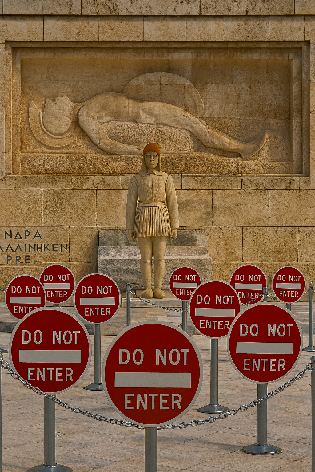 Καθαρές κουβέντες: ο στρατός αναλαμβάνει τη «φύλαξη» και την «προστασία» του Αγνωστου Στρατιώτη. Ο στρατός βγαίνει από τους στρατώνες και αναλαμβάνει αστυνομικά καθήκοντα. Αύριο στην πλατεία Συντάγματος, μεθαύριο κάπου αλλού.