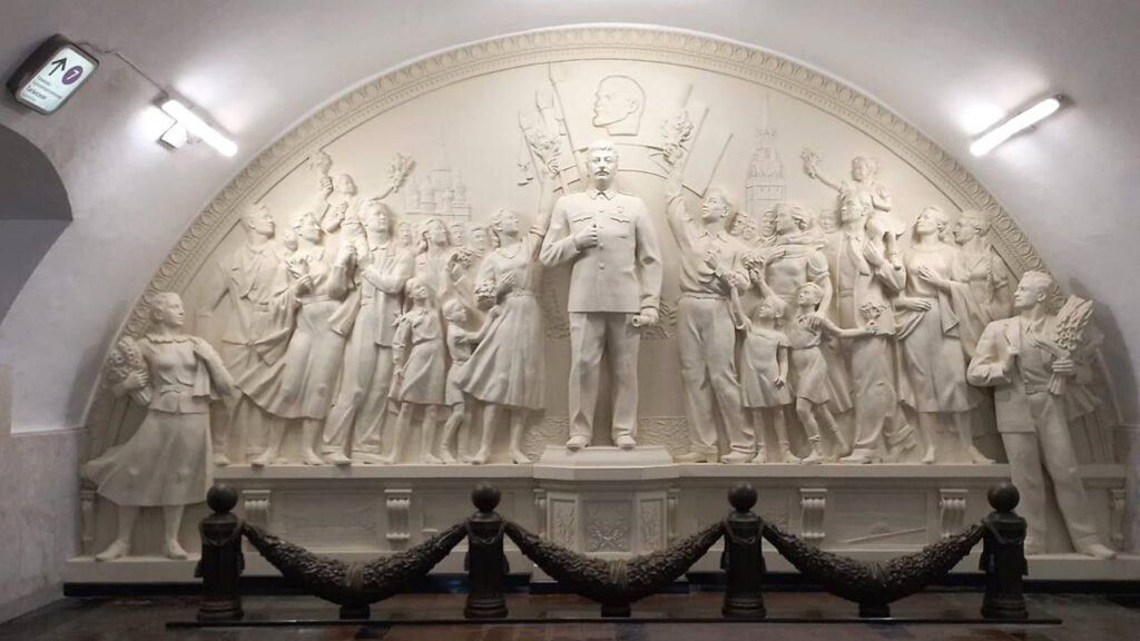 Πίσω από αυτό το πολιτιστικό θαύμα υπάρχει μια πολιτική απόφαση, εισηγητής της οποίας υπήρξε ο Στάλιν: στους Μοσχοβίτες έπρεπε να παραδοθεί ένα Μετρό που θα συνδυάζει τις καθημερινές μετακινήσεις τους, για δουλειά ή απλά για βόλτα, με τη δυνατότητα να έρχονται σε επαφή με την υψηλού επίπεδου τέχνη. Οχι τσιμεντένιες αψίδες και ντουβάρια, που τα προσπερνάς τρέχοντας, αλλά μια αίθουσα τέχνης που αξίζει τον κόπο να τη διασχίσεις παρατηρώντας τις εικαστικές και αρχιτεκτονικές δημιουργίες της. Οπωςακριβώς θα έκανες σε ένα μουσείο ή μια γκαλερί. Ακόμα και βιαστικά να περάσεις από το σταθμό, πάλι θα προλάβεις να πάρεις μια ανάσα πολιτιστικής και πνευματικής ανάτασης.