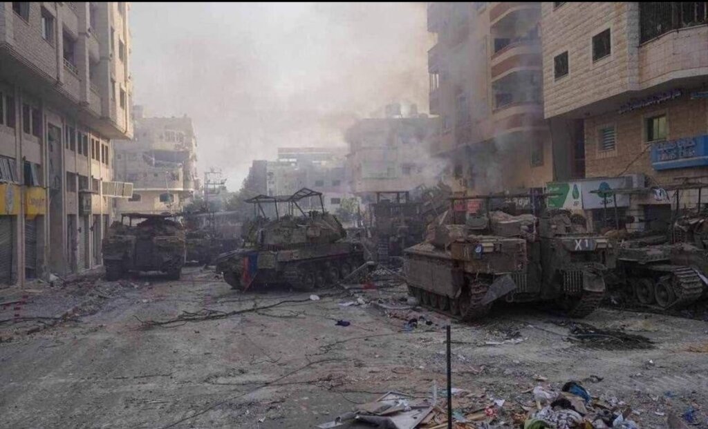 Καμένα τανκ σε έναν δρόμο της Γάζας (περιοχή Αλ-Ριμάλ). Εμπόρευμα τελευταίας εσοδίας. Βάλτε και τους άλλους δρόμους και τις άλλες περιοχές και θα καταλάβετε πως όταν ο Αμπού Ομπάιντα δήλωνε ότι η Αντίσταση κατέστρεψε τουλάχιστον 160 τεθωρακισμένα κάθε είδους του εχθρικού στρατού, δεν έλεγε ψέματα.