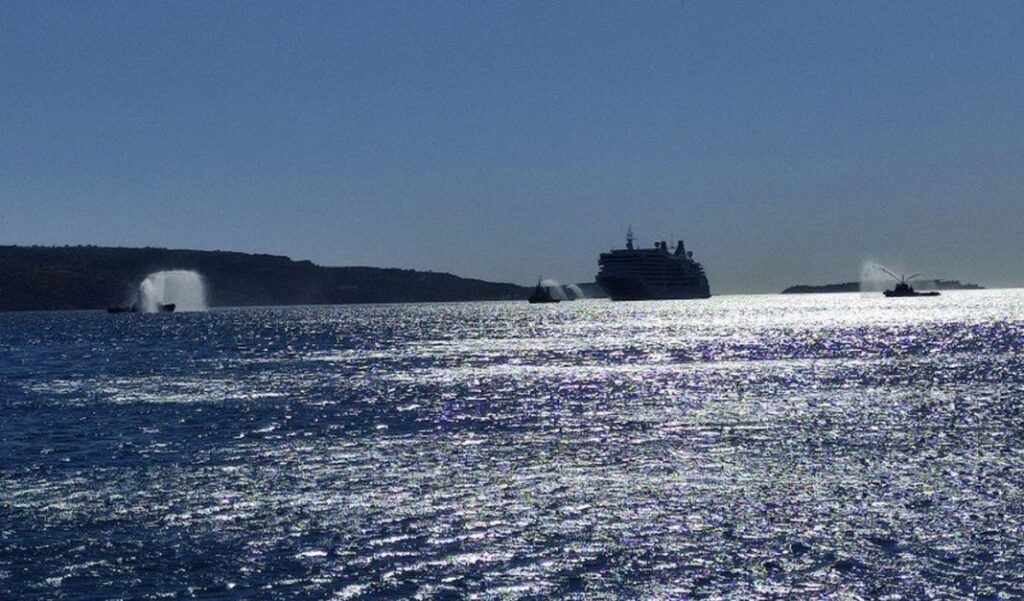 Επανάληψη της περσινής θλιβερής εικόνας είχαμε πριν λίγες μέρες στη Κρήτη με το περίφημο «άνοιγμα» του τουρισμού. Πέρσι είχαμε στο αεροδρόμιο του Ηρακλείου υδάτινες αψίδες και χορευτικούς συλλόγους παρέα με βλαχοδήμαρχους και παρατρεχάμενους να υποδέχονται μια χούφτα τουρίστες. Φέτος είχαμε υδάτινες αψίδες γύρω από κρουαζιερόπλοια που κατέφθαναν στη Σούδα των Χανίων.