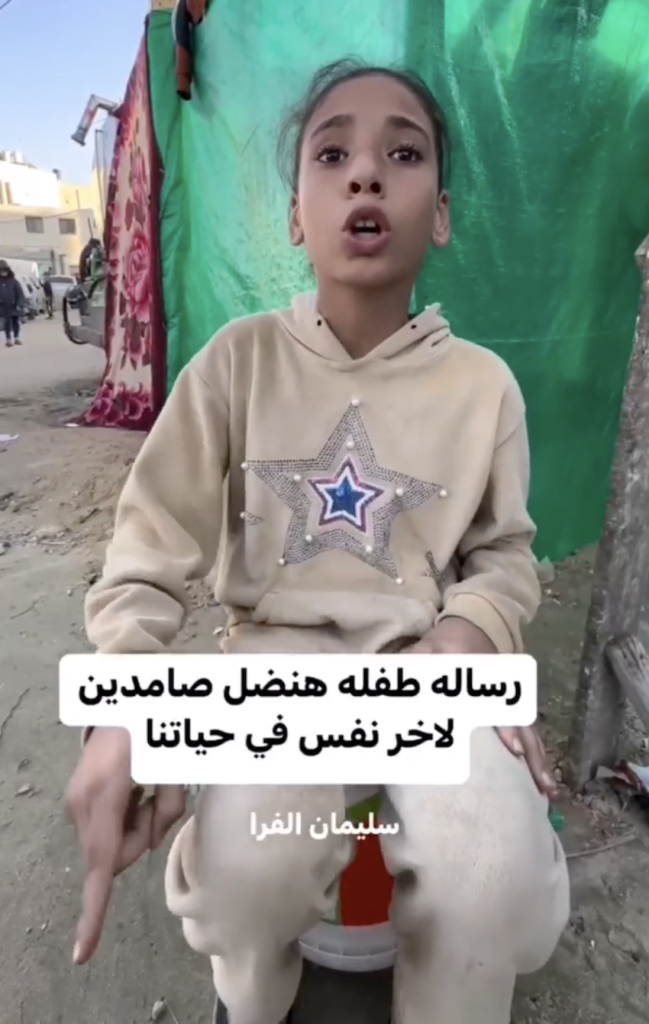 Kι από ένα καταυλισμό εκτοπισμένων στο νότο, τα μάτια αυτού του κοριτσιού πετάνε φλόγες: «Θα μείνουμε όρθιοι στη Γάζα μέχρι την τελευταία μας πνοή»!