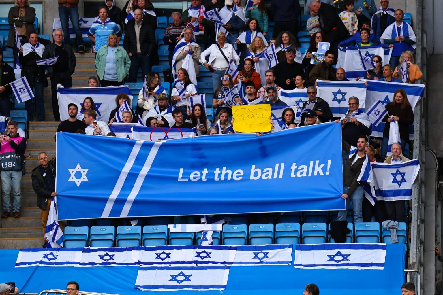 Το γήπεδο ήταν γεμάτο με παλαιστινιακές σημαίες και το σύνθημα «Free Palestine» ακουγόταν συνεχώς.