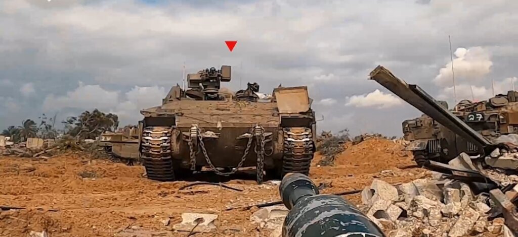 3:04 – 3:24 Το τανκ τρέχει, αλλά αυτό δεν σημαίνει τίποτα για τους παλαιστίνιους μαχητές. Το τανκ αυτό είναι ειδικά σχεδιασμένο για να ανεφοδιάζει με πυρομαχικά τα υπόλοιπα τανκ. Οι μαχητές το ξέρουν και στοχεύουν το κιβώτιο με τα πυρομαχικά. Γι’ αυτό και η έκρηξη είναι… ηφαιστειακή.
