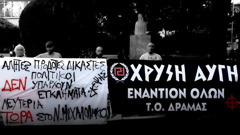 Ήρθε η ώρα των απολογιών στο Εφετείο της Χρυσής Αυγής και το δικαστήριο δυσκολεύεται να βρει τους πρωτόδικα καταδικασμένους ηγέτες της ναζιστικής εγκληματικής οργάνωσης. Ακόμα και τώρα δεν γνωρίζουμε πόσοι και ποιοι θα εμφανιστούν στην αίθουσα για να υπερασπιστούν τον εαυτό τους και την οργάνωσή τους. Στην παραπάνω φωτογραφία από την «πολιτική δράση» της οργάνωσης εμφανίζονται ο Γερμενής (αριστερά, με τον λοστό) και ο Κασιδιάρης (δεξιά, πιο πίσω). Ο πρώτος δεν γνωρίζουμε αν θα απολογηθεί στις 22, ο δεύτερος θα εμφανιστεί στις 30 Οκτωβρίου. Στις 31 Οκτωβρίου θα κλείσει τον κύκλο των απολογιών ο Λαγός.