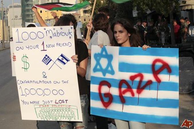 Πρόκειται πραγματικά για κατόρθωμα. Με την αμερικανόδουλη και φιλοσιωνιστική πολιτική της η κυβέρνηση Παπανδρέου όχι μόνο πλήττει βάναυσα τα αισθήματα που τρέφει για τους Παλαιστίνιους ο ελληνικός λαός, αλλά και βάζει το ελληνικό έδαφος στο στόχαστρο ευρύτερων δυνάμεων της Μέσης Ανατολής, στιγματίζοντάς την ως προκεχωρημένο φυλάκιο των Σιωνιστών στην Ευρώπη.