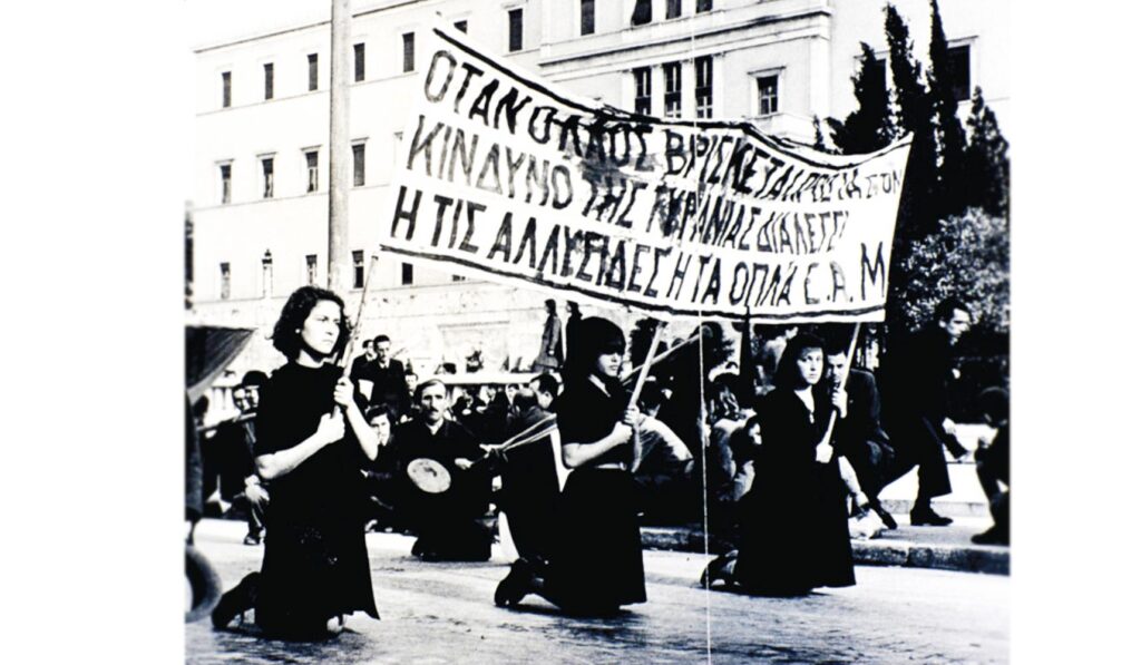 Τα λόγια στο πανό που κρατούσαν οι μαυροφορεμένες ΕΑΜίτισσες, μια μέρα μετά τη «ματωμένη Κυριακή» της 3ης Δεκέμβρη του ‘44 σφράγισαν ανεξίτηλα την ελληνική Ιστορία και θα διατηρούν την επικαιρότητά τους όσο στην Ελλάδα θα υπάρχει καπιταλισμός: «Οταν ο λαός βρίσκεται μπροστά στον κίνδυνο της τυραννίας, διαλέγει ή τις αλυσίδες ή τα όπλα».