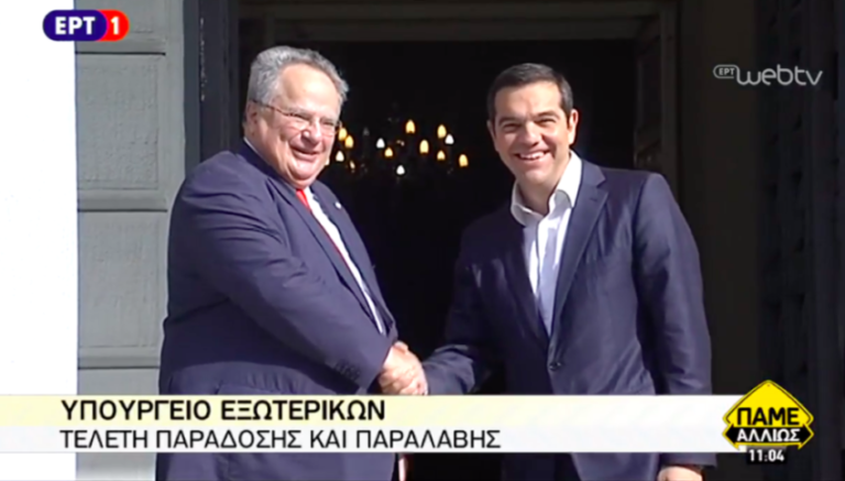 Ηταν φανερό ότι ο Τσίπρας «αγόραζε» λίγο χρόνο, ώστε «να ηρεμήσουν τα πνεύματα», να κάνει και κάποια τηλεφωνική επαφή με τον Κοτζιά (ή να στείλει κάποιον μεσάζοντα να συναντηθεί μαζί του) και μετά να πρωταγωνιστήσουν από κοινού στο σόου της τελετής παράδοσης-παραλαβής του υπουργείου Εξωτερικών. Γι' αυτό και από τις Βρυξέλλες έκανε γαργάρα τα περί «ακατανόητης» παραίτησης, που είχε πει ο Τζανακόπουλος, και έπλεξε το εγκώμιο του Κοτζιά: «Ο Νίκος Κοτζιάς δεν ήταν απλά ένας Υπουργός μου και συνεργάτης μου, αλλά ήταν κι ένα ανοιχτό βιβλίο στα θέματα της εξωτερικής πολιτικής. Αυτό, βεβαίως, που με κάνει να είμαι ακόμα ευτυχής είναι πως θα έχω τη δυνατότητα αυτό το βιβλίο να το συμβουλεύομαι τακτικά στα κρίσιμα θέματα, στα θέματα στρατηγικής, επαναλαμβάνω, που αφορούν την εξωτερική μας πολιτική και που πλέον βρίσκονται αποκλειστικά στα δικά μου τα χέρια».