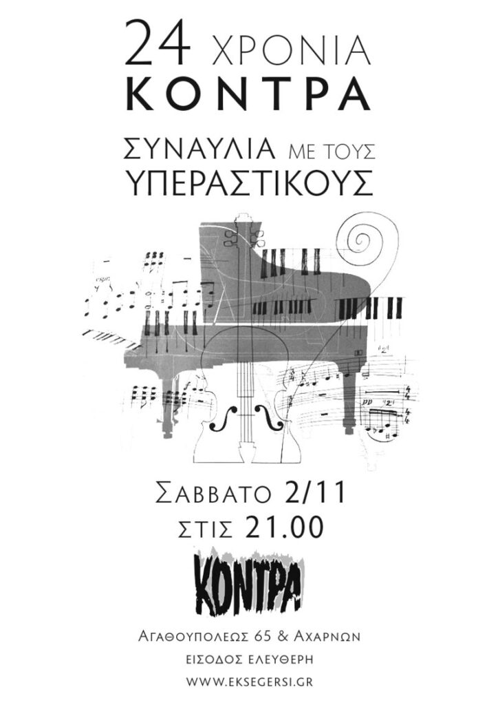 Θα γιορτάσουμε και φέτος την επέτειό μας υπό τους ήχους των «Υπεραστικών», οι οποίοι πλέον δε χρειάζονται συστάσεις. Θέλουμε να τους ευχαριστήσουμε που μας τιμούν με την τέχνη τους και να σας καλέσουμε όλες και όλους απόψε στη γιορτή μας.