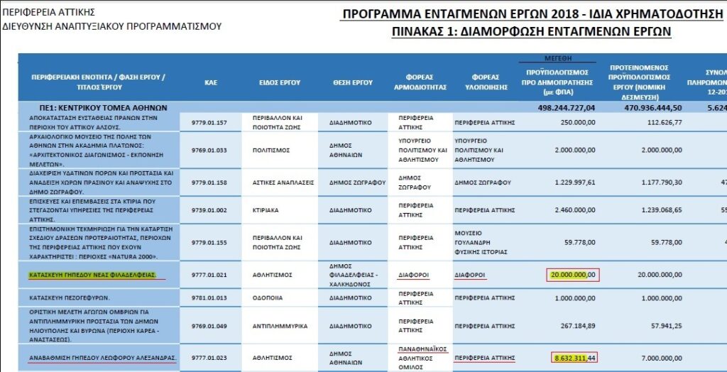 Στον προϋπολογισμό της περιφέρειας Αττικής στο Πρόγραμμα Ενταγμένων Εργων 2018 είναι εγγεγραμμένα και τα 20 εκατ. που προορίζονται για το γήπεδο Μελισσανίδη στη Νέα Φιλαδέλφεια. Μόνο που αυτό το γήπεδο τυπικά πρέπει να είναι γήπεδο του ερασιτεχνικού σωματείου ΑΕΚ, το οποίο -ως μη κερδοσκοπικό πρόσωπο ιδιωτικού δικαίου- μπορεί να χρηματοδοτηθεί από την περιφέρεια. Αν το γήπεδο ανήκει σε κερδοσκοπικό πρόσωπο ιδιωτικού δικαίου, όπως είναι μια ανώνυμη εταιρία, η περιφέρεια απαγορεύεται να το χρηματοδοτήσει.