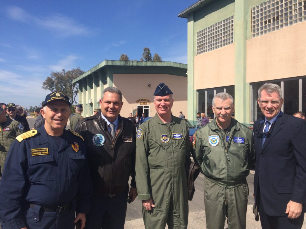 ΥΓ. Μπορεί για το σκάνδαλο Novartis να έχει πιει το αμίλητο νερό, όμως στα… στρατιωτικά του καθήκοντα ο υπουργός Πάνος συνεχίζει ακάθεκτος, όπως μας ενημερώνει και από την ιστοσελίδα του ΥΕΘΑ και από το twitter. Εδώ, φωτογραφίζεται με τον αμερικανό πρέσβη και ανώτατους αξιωματικούς στο αεροδρόμιο της Ανδραβίδας, όπου θα διεξαχθεί αμερικανοελληνική στρατιωτική άσκηση. Ο Τζέφρι Πάιατ, ως άκαπνος, φωτογραφίζεται με κοστούμι και γραβάτα, ενώ ο υπουργός Πάνος φοράει πάνω από το κοστούμι δερμάτινο αεροπορικό μπουφάν με όλα τα διάσημα. Μεγαλεία!