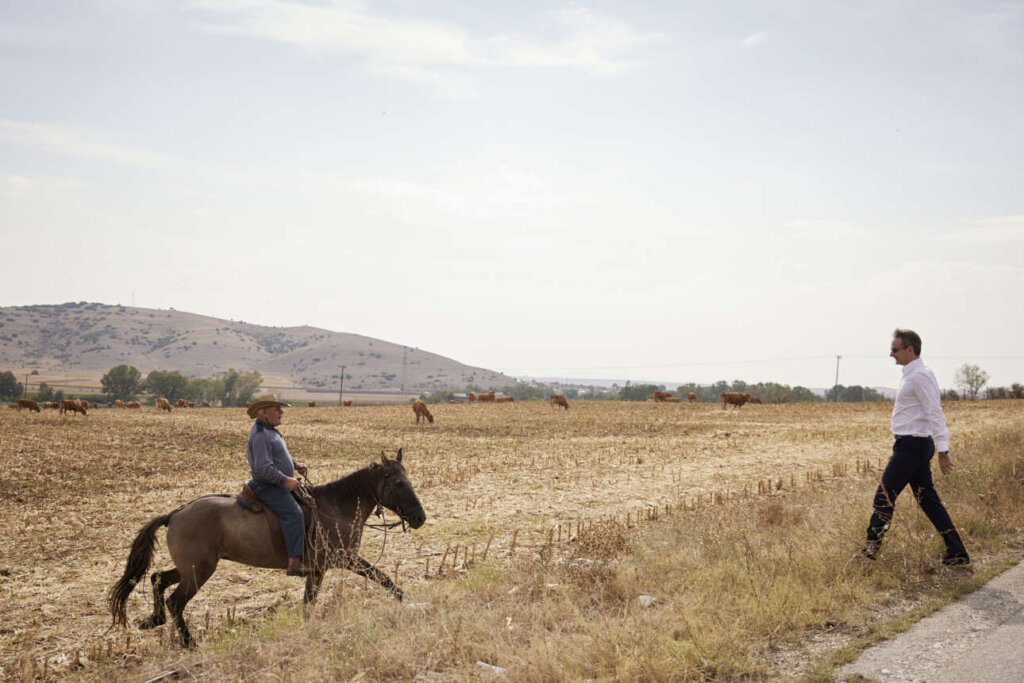Ακολουθώντας αυτή τη γραμμή της «αμερικανιάς», ο image maker του Κούλη σχεδίασε χθες και τη συνάντηση με τον… Ντάλτον. Στη μέση του πουθενά, ο Κούλης συναντιέται… όλως τυχαίως με έναν ηλικιωμένο έφιππο γελαδάρη (με 300 γελάδια δεν τον λες και φτωχό), ο οποίος… όλως τυχαίως είχε βγάλει μερικά γελάδια να βοσκήσουν… στα ξερά (τα υπόλοιπα έμειναν στο σύγχρονο στάβλο, όπου γίνεται η εκτροφή τους – εννοείται πως τις σταβλικές εγκαταστάσεις δεν τις έδειξαν, γιατί θα χάλαγαν το στήσιμο του… ακάματου ξωμάχου του κάμπου, ο οποίος είναι γοητετυμένος με τον… ακάματο πρωθυπουργό). Και ακολούθησε ο σπαρταριστός διάλογος, που μεταδόθηκε και μια και δυο και τρεις και τέσσερις φορές από τα «πετσωμένα» ΜΜΕ, για να τον παρακολουθήσει κάθε Ελληνας και κάθε Ελληνίδα (αυτό ονομάζεται πλήρης άγνοια κινδύνου).