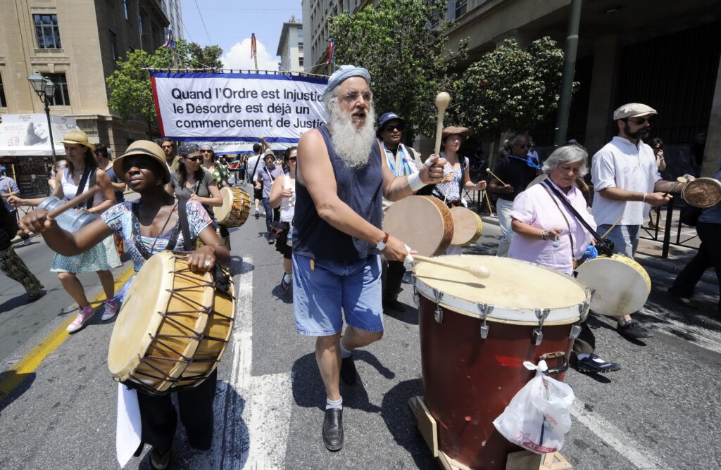 Ηταν, δε, αυτή η παρέμβαση πιστή στο πολιτικό-ιδεολογικό πνεύμα, το οποίο η Μνουσκίν έχει εμφυσήσει στην κολεκτίβα και το οποίο διαπνέει όλες τις δουλειές της. Ενα πνεύμα κοντά στον μικροαστικό σοσιαλισμό του Ζορές, με τις πασιφιστικές του αυταπάτες και τον οικονομικό και πολιτικό ρεφορμισμό του. Η Μνουσκίν βρέθηκε στις κινητοποιήσεις των γαλλικών συνδικάτων, βρέθηκε στο Σύνταγμα των non violent αυταπατών, δύσκολα όμως θα βρισκόταν στις φωτιές που πυρπολούσαν τα παρισινά banlieues πριν μερικά χρόνια ή στα οδοφράγματα του ελληνικού Δεκέμβρη του 2008.