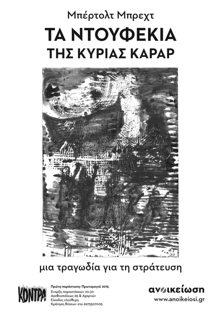 Η ανοικείωση παρουσιάζει τη δεύτερη παραγωγή της. Το κλασικό έργο του Μπέρτολτ Μπρεχτ «Τα ντουφέκια της κυρίας Καράρ» επικαιροποιείται (με την προσθήκη Προλόγου και Επιλόγου), έτσι που ο δραματικός του πυρήνας να αφορά ζέοντα προβλήματα του σήμερα.