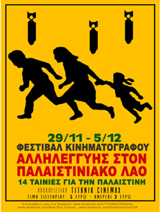Πλοήγηση:Αρχική»Πολιτισμός»Φεστιβάλ Κινηματογράφου Αλληλεγγύης στον παλαιστινιακό λαό